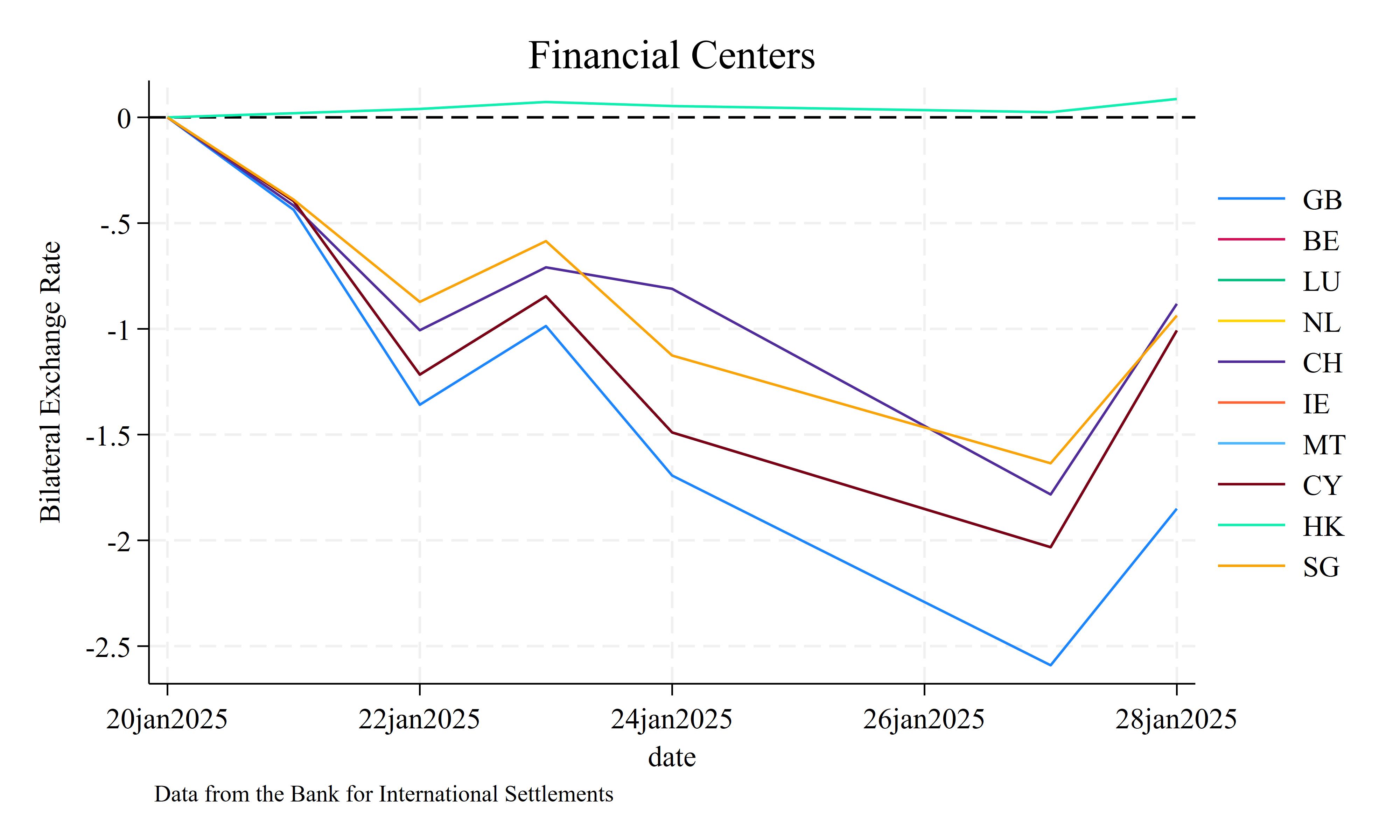 The Bank for International Settlements provides access to daily exchange rates. It may be interesting to plot the evolution of exchange rates since the Inauguration Day of the new US President.