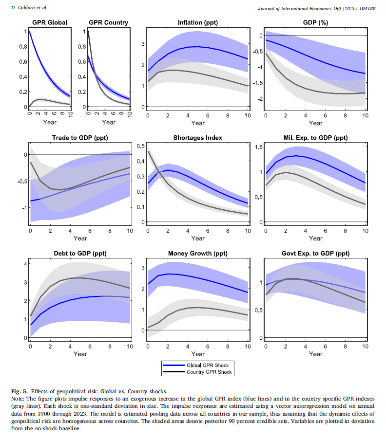 That is precisely what makes Figure 5 so interesting. It does not merely restate the baseline result. It refines it by showing that the geographic scope of geopolitical risk matters for macroeconomic transmission.