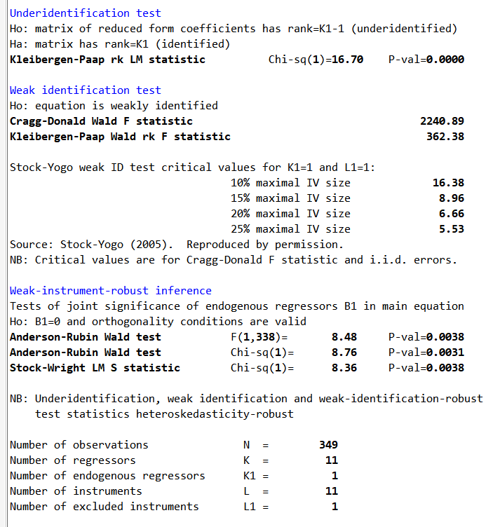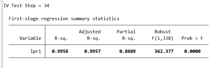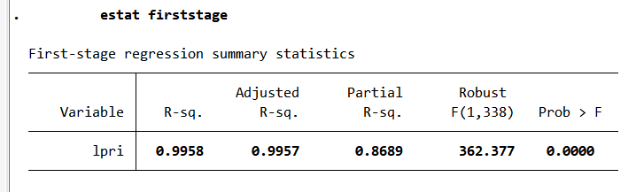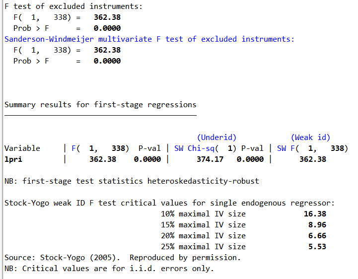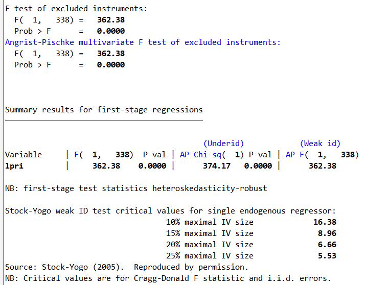 instr(d2.pri) ivtest(firststage) noisily stats z ///