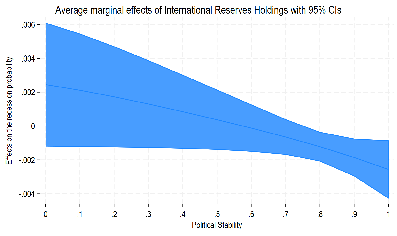 This is exactly the kind of object that is useful when the economic question is whether international reserves are more stabilizing in politically stable economies, or whether their buffer role disappears under high trade restrictions.
