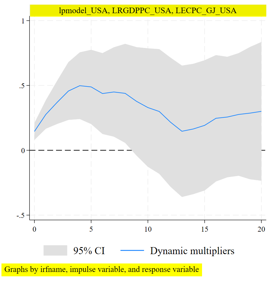 But, when you estimate and want to plot the impulse response function with the local projection method, we may to remove the parts in yellow. We are going to add some element to the code to remove these parts in yellow.