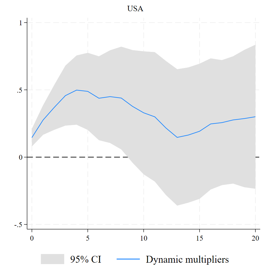 If you are familiar with the impulse response function (IRF) analysis with Stata, you might have encountered an annoying problem. When you plot an IRF, you will have additional notes by default to read the graphs when you have multiple panels in a multivariate system. This particularly helpful to read the IRF after estimating a VAR. The code is reproduced below and the created figure too: